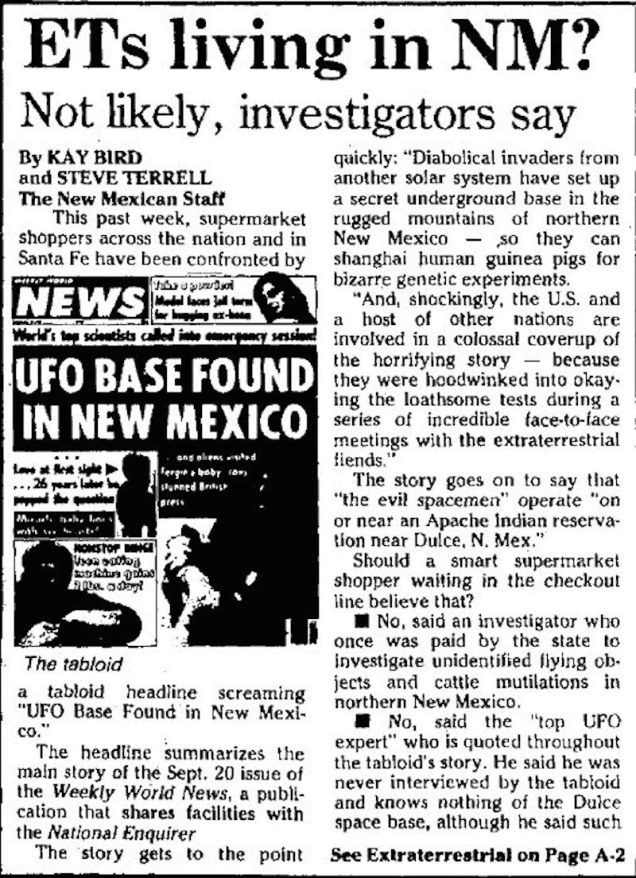 Il n’est pas facile de croire à l’histoire de Christa Tilton, mais les habitants de Dulce croyaient fermement aux activités OVNI qui se déroulaient au-dessus de leur ville depuis les années 1960. Parmi les 3 000 habitants, nombreux sont ceux qui ont partagé des histoires « d’ hélicoptères militaires volant à basse altitude et de lumières rapides faisant des va-et-vient dans le ciel ».