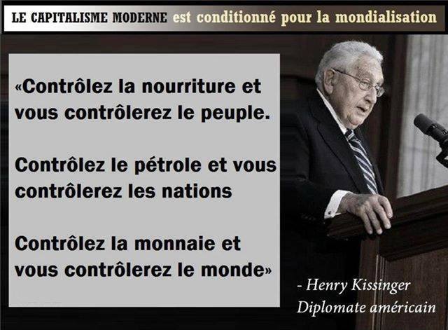 Henry Kissinger, le 21 mai 1992 : Aujourd’hui, les américains seraient outrés si les troupes des Nations Unies entraient dans Los Angeles pour rétablir l’ordre. Demain, ils leur en seront reconnaissants ! Ceci est spécialement vrai si on leur disait qu’il existe une menace extérieure, réelle ou fictive, mettant en péril notre existence même. Alors tous les peuples du monde supplieront leurs dirigeants de les délivrer de ce mal. Tout le monde craint l’inconnu. Quand les gens connaîtront ce scénario, ils abandonneront leurs droits individuels en échange de la protection de leur bien-être par les gouvernements. Il me semble évident que les gens ne sont pas prêts à entendre tout ce que savent certains de nos dirigeants. Peut-être que nos visiteurs extraterrestres peuvent décider qui est prêt pour la vérité et qui ne l’est pas. Peut-être est-ce une question de choix individuel.