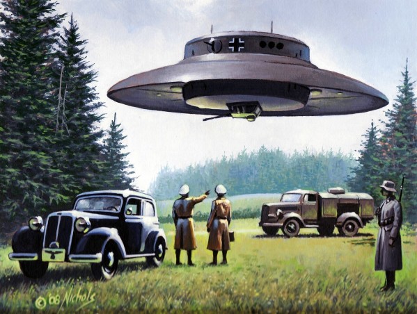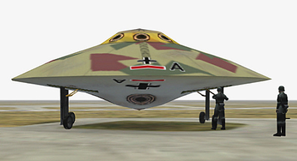 Virgil Armstrong, ex-membre de la CIA et retraité de Green Beret, déclare que les engins volants allemands pendant la Deuxième Guerre pouvaient atterrir et décoller à la verticale et voler en angle droit. Ils atteignaient 3.000km/h et étaient armés de canons laser (probablement le KSK, « canon à rayons forts ») qui pouvait traverser une épaisseur de 10 cm de blindage.