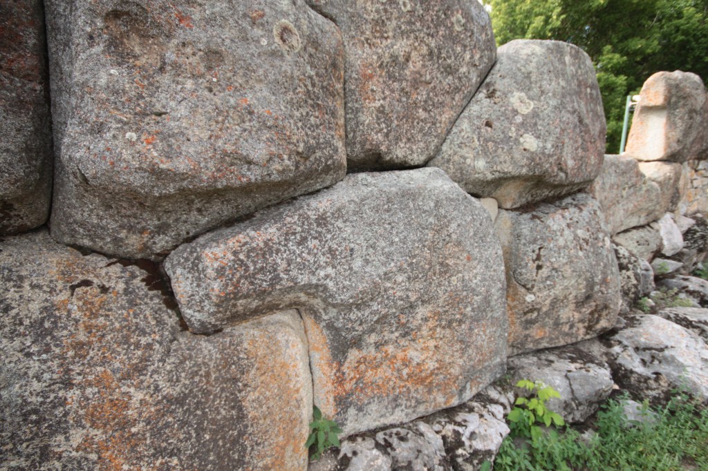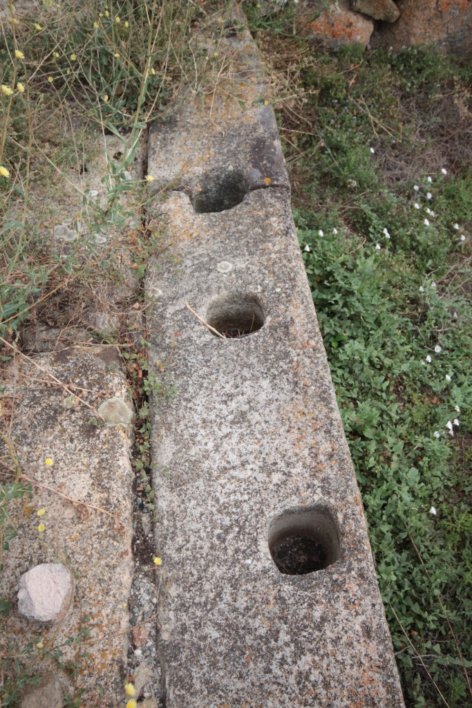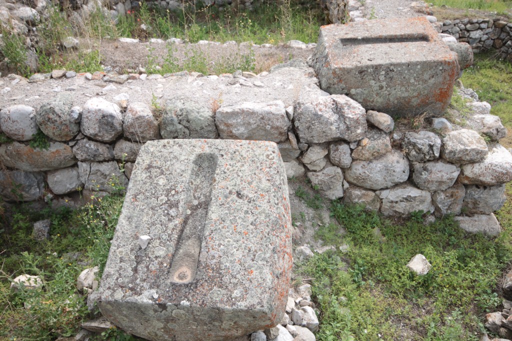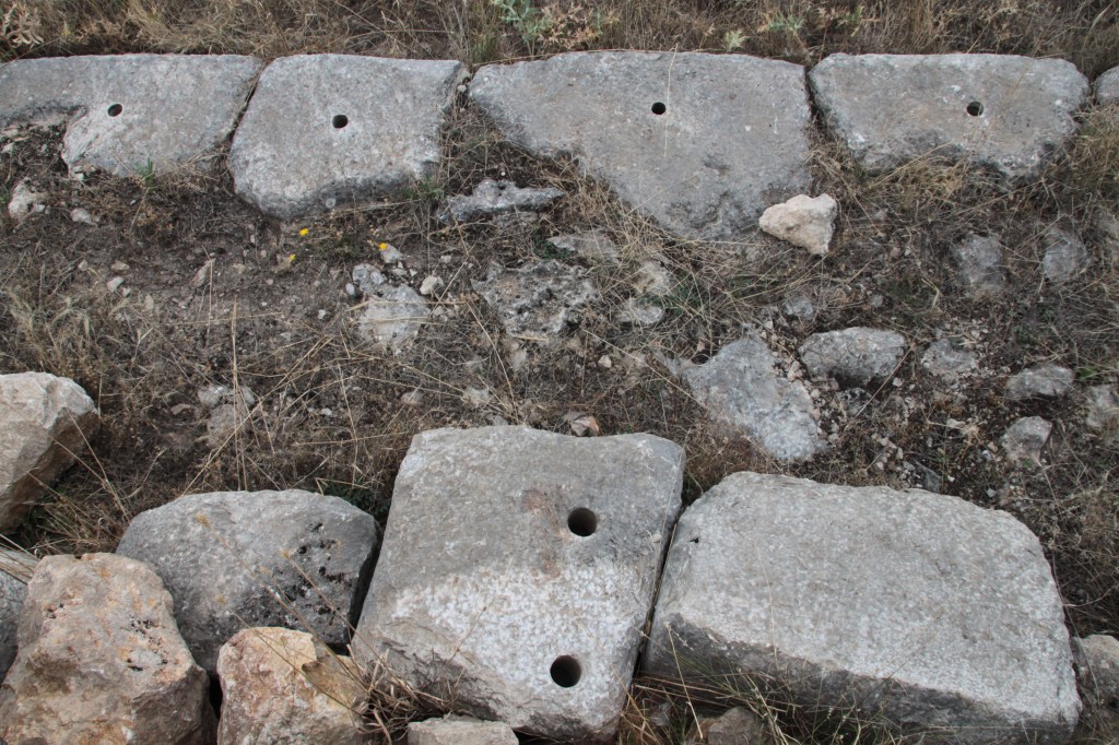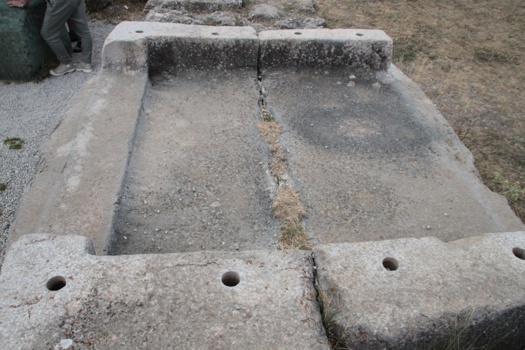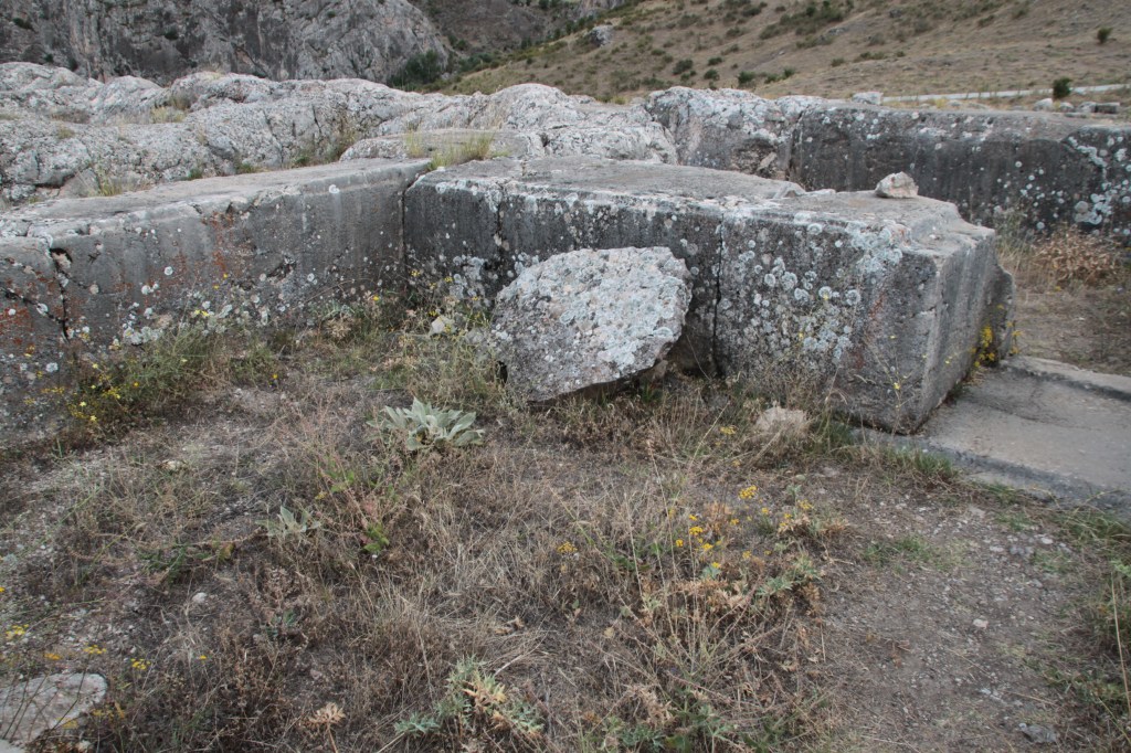 Remarquez également tous les trous bien visibles dans les pierres du sol. Ils sont la marque de l’ossature en bois qui, remplie de briques de terre crue, formait les murs du temple. Les Hittites utilisaient des « perceuses » en bronze, sacrément efficaces!