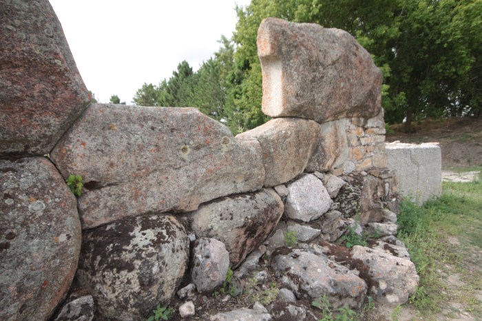 Juste avant d’arriver au guichet du site de Hattusa, vous avez sans doute remarqué le petit morceau de muraille qui a été reconstitué à l’original. Bizarrement, moi, cela m’a fait l’effet d’un décors en carton-pâte… C’est pourtant une reconstitution fidèle, réalisée par les archéologues allemands, entre 2003 et 2005. Il est intéressant de s’y arrêter quelques minutes.