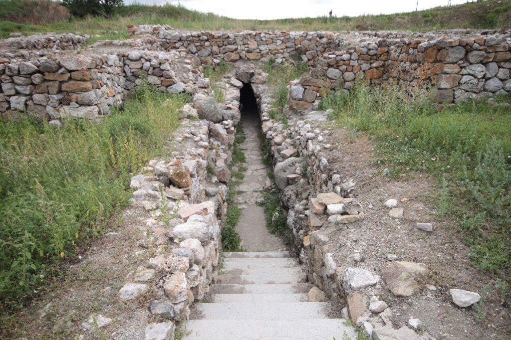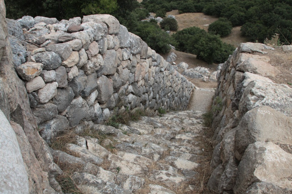 Vous avez trois choses remarquables sur cette porte des sphinx – Yerkapi. Tout d’abord, vous remarquez nettement le remblais qui fait de cet endroit le point culminant de la muraille. Des escaliers de pierre permettent d’atteindre une altitude de 1250m.
