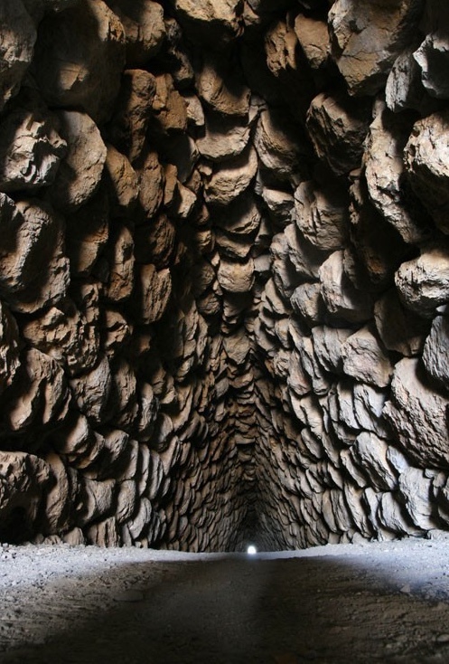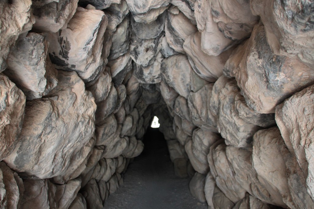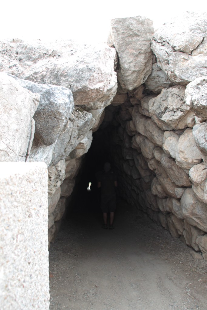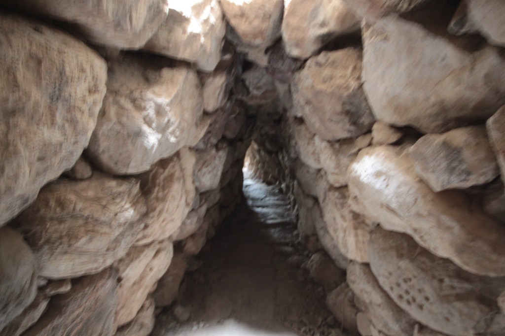 Justement, c’est maintenant à vous de redescendre tout en bas… On peut « traverser la pyramide », à travers une poterne. C’est à dire un long tunnel de 71 mètres de long, en encorbellement avec ces pierres qui semblent vous tomber sur la tête. Moi j’ai adoré!