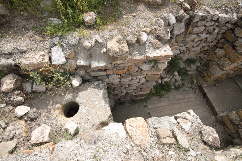 - ou plus étonnant … des boutiques! On remarque d’ailleurs en contrebas, d’énormes amphores semi enterrées (jusqu’à 9000L) qui servaient d’entrepôt.