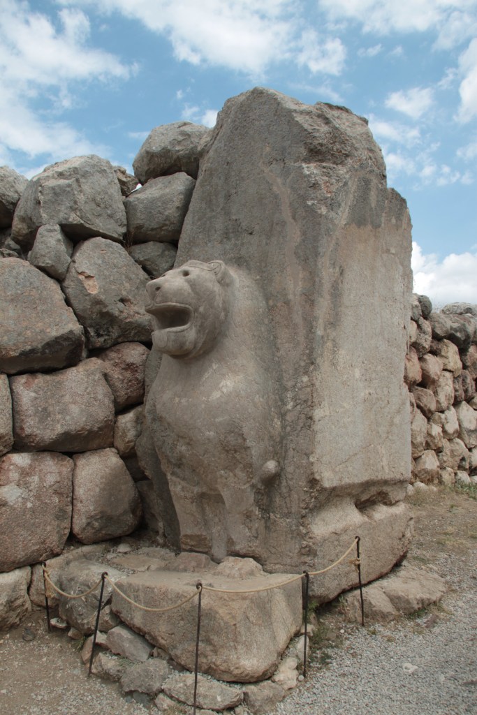La porte des lions – Aslanlikapi – doit son nom à ces deux magnifiques félins qui en sont les gardiens! Gravés dans la roche, ils n’en sont pas moins très réalistes. Et à dessin car ils devaient faire peur aux mauvais esprits (et accessoirement impressionner les visiteurs!) Pour info, les sculptures originales sont conservées au musée des civilisations anatoliennes d’Ankara.