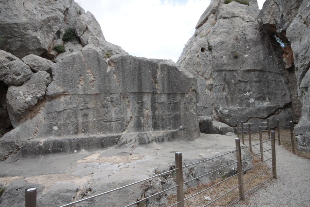 Si vous êtes venu jusqu’à Hattusa, vous ne pouvez faire l’impasse sur Yazilikaya! D’abord parce que c’est juste à côté (5 minutes à peine en voiture). Et en plus parce que c’est tout à fait complémentaire. On peut en faire le tour en un quart d’heure, mais ça vaut le détour.