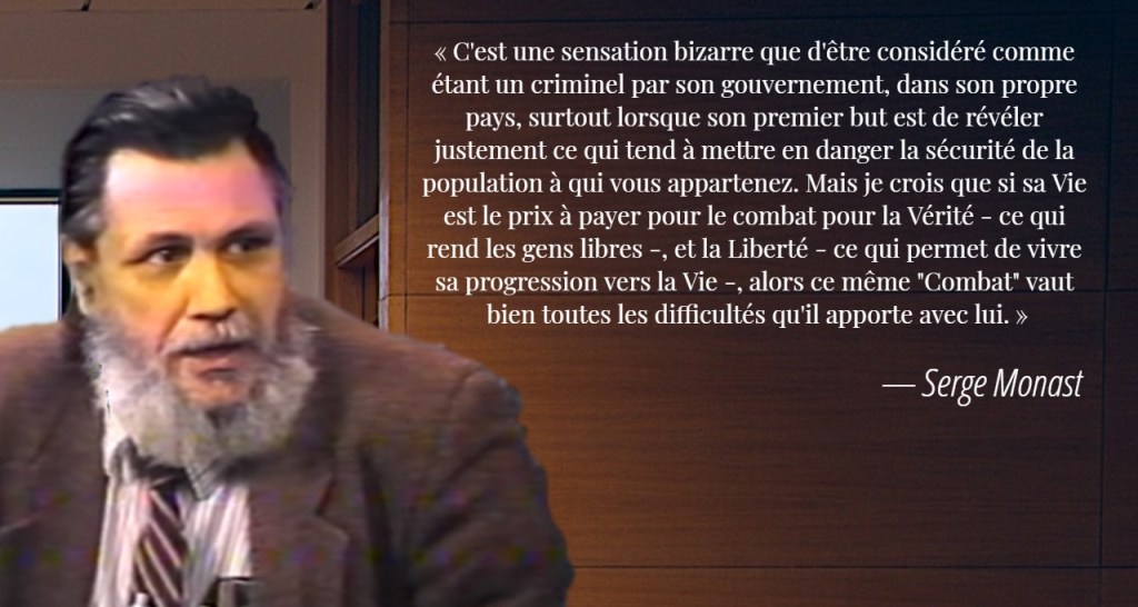 Serge Monast : « Même si ma vie est en danger à cause de la diffusion d’informations comme celles-ci, la votre l’est encore plus par l’ignorance de ces mêmes informations. »