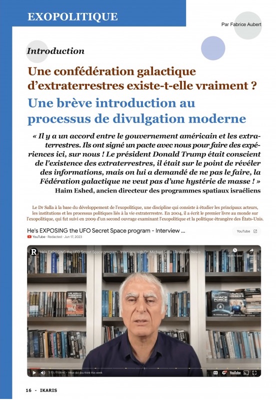 Michael E. Salla est l’auteur de quatre livres consacrés à la politique internationale. Il est toutefois mieux connu en tant que pionnier du développement de l’exopolitique qui représente l’étude des principaux acteurs, institutions et processus politiques liés à la vie extraterrestre. Il est le fondateur de l’Institut d’exopolitique et du Bulletin d’exopolitique, et le coorganisateur d’une série de congrès sur la transformation planétaire qui ont eu lieu à Hawaii de 2006 à 2011.